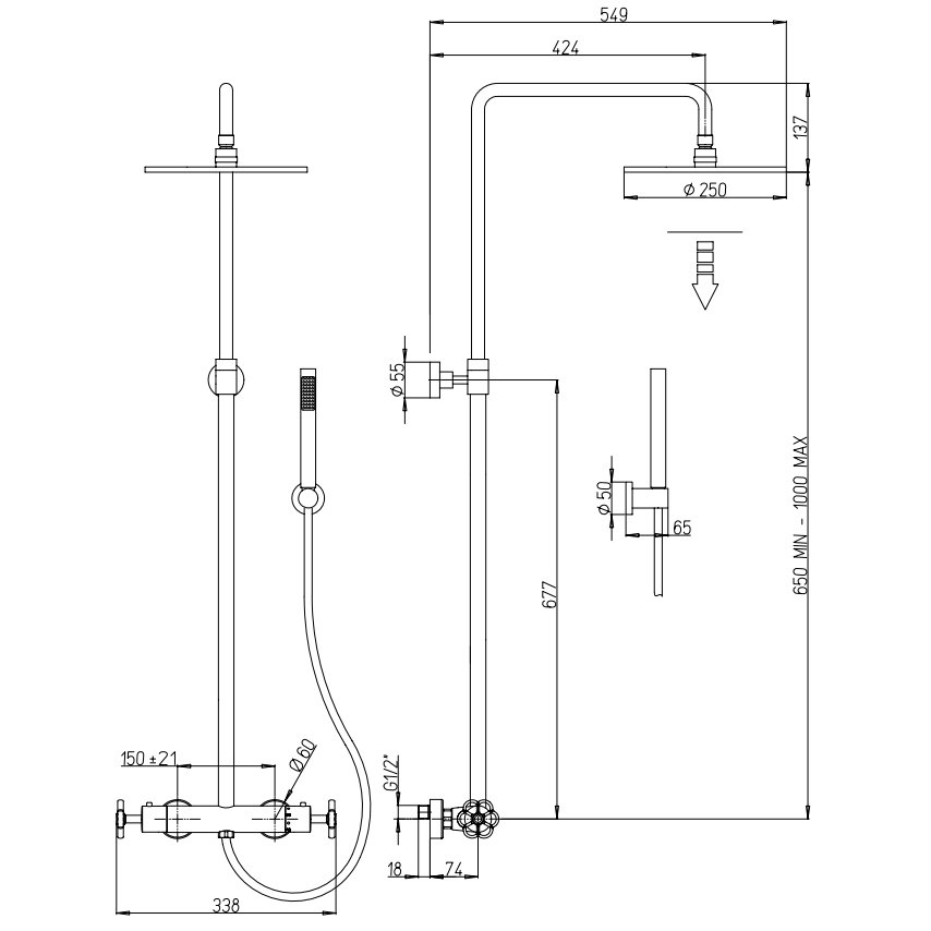 PAINI GARAGE EXTERNAL THERMOSTATIC MIXER WITH SHOWER AND SHOWER HEAD