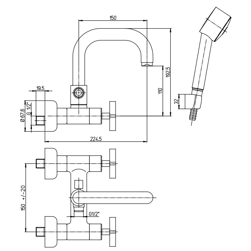 PAINI LEMON SINGLE LEVER BATH-SHOWER MIXER WITH FIXED SHOWER KIT