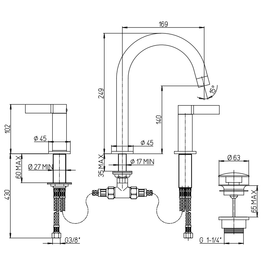 • NEWFORM BLINK 3-HOLE BASIN MIXER MEDIUM SPOUT WITHOUT WASTE CHROME