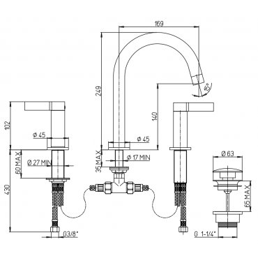 • GABOLI FRATELLI ICE BIJOUX 3 HOLE WASHBASIN MIXER WITH SWIVEL SPOUT AND POP-UP