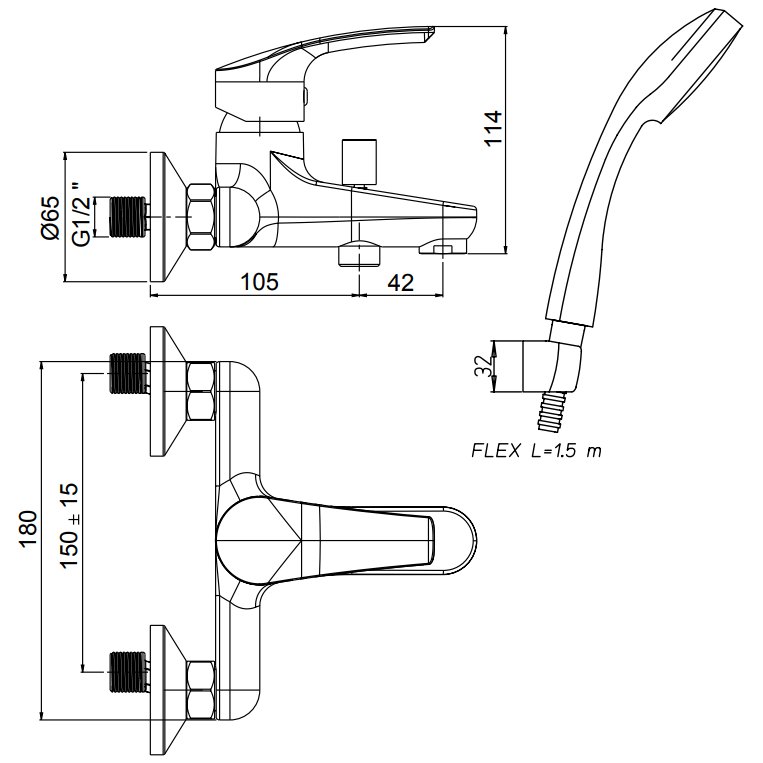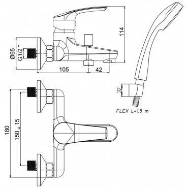 PAINI ATOMIX 3.0 SINGLE LEVER BATH-SHOWER MIXER WITH FIXED SHOWER KIT