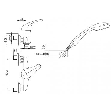 PAINI CRETA 100 SINGLE-LEVER SHOWER MIXER WITH ADJUSTABLE SHOWER KIT