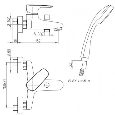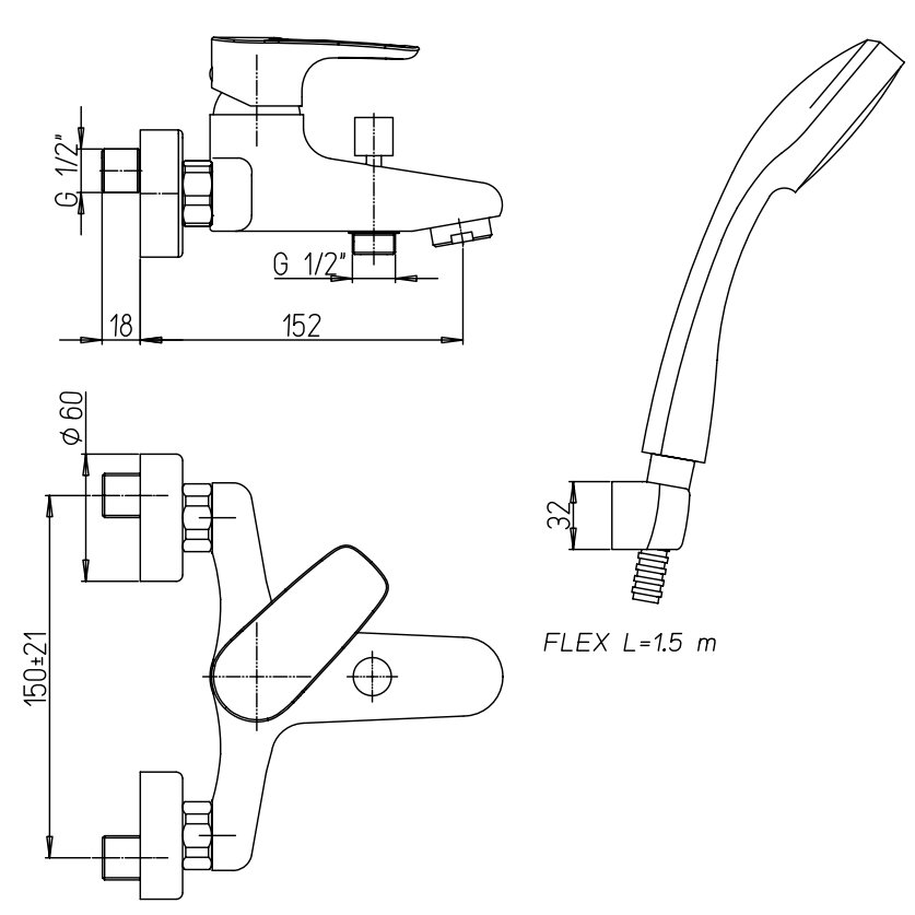 PAINI SMART SINGLE LEVER BATH-SHOWER MIXER WITH FIXED SHOWER KIT
