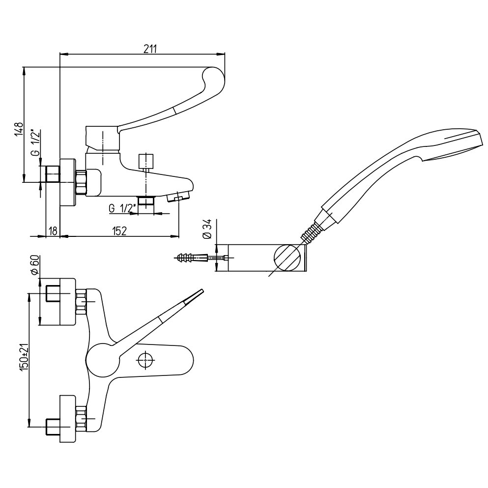 PAINI SMART MEDICAL SINGLE LEVER BATH-SHOWER MIXER WITH ADJUSTABLE SHOWER KIT