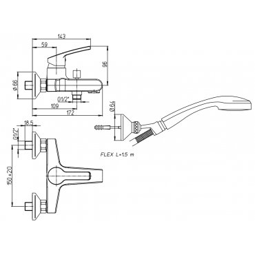 PAINI MIURA SINGLE LEVER BATH-SHOWER MIXER WITH ADJUSTABLE SHOWER KIT
