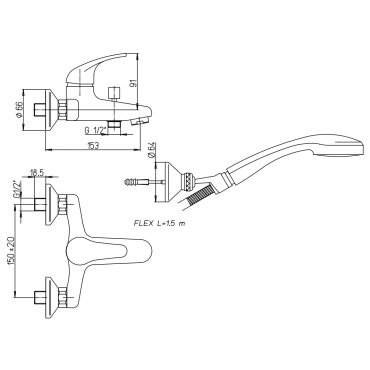 PAINI JOLLY SINGLE LEVER BATH-SHOWER MIXER WITH ADJUSTABLE SHOWER KIT