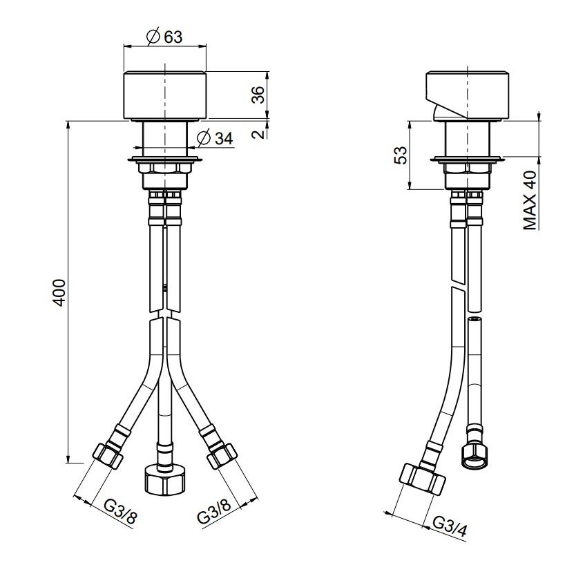 Stereo taps have a brushed finish and guarantee water saving, thanks to the installation of aerators with a flow rate of 5 lt/min.