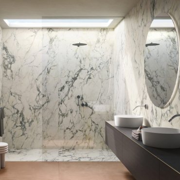 A marble-effect porcelain stoneware offered in various formats, from 120x260 to 120x120, 60x120 and 60x60 in natural and shine finish, Premiere creates the right harmony of colours throughout the room, giving the space a refined beauty.