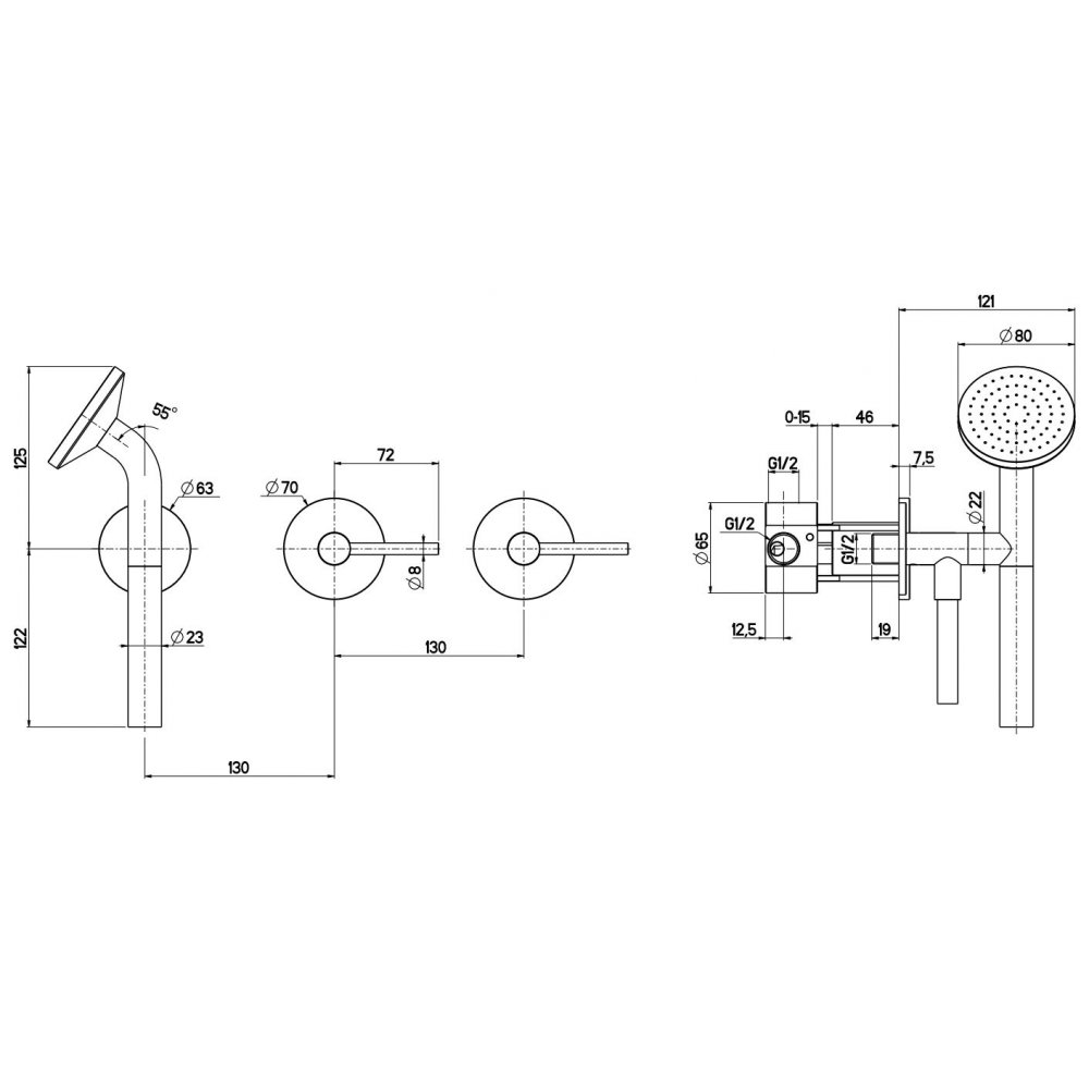 QUADRO DESIGN FFQT GROUP 2 WALL-MOUNTED MIXER WITH SHOWER KIT