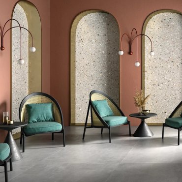 The Dolmix porcelain stoneware collection by Keope ceramics impresses with its graphic rigour and decorative taste.