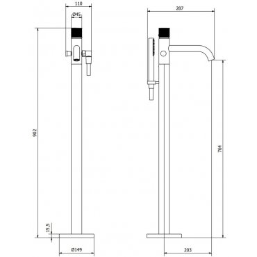 IB RUBINETTERIE GATSBY FLOOR-STANDING BATHTUB MIXER WITH SHOWER KIT CHROME