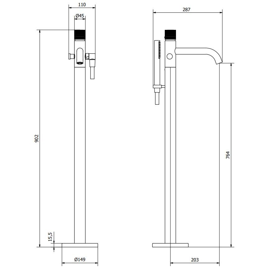 IB RUBINETTERIE VINILE FLOOR-STANDING BATHTUB MIXER WITH SHOWER KIT CHROME