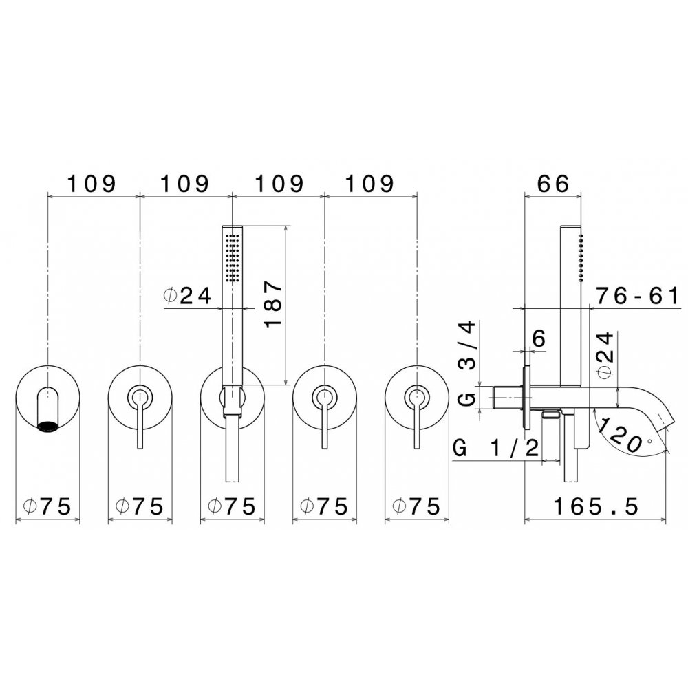 • GABOLI FRATELLI VERY VINTAGE EXPOSED BATH MIXER WITH DUPLEX AND SHOWER
