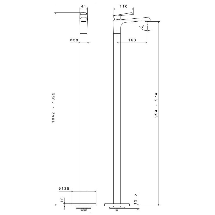 • QUADRO DESIGN Q PEDESTAL FREE-STANDING WASHBASIN MIXER