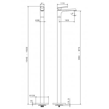 • TREEMME 22 MM FREE STANDING WASHBASIN MIXER STEEL