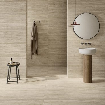 Offering three shades (White, Beige and Taupe) and different formats, New Classic creates floor and wall tiles with a modern and refined design.