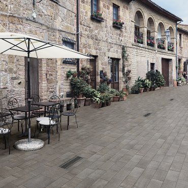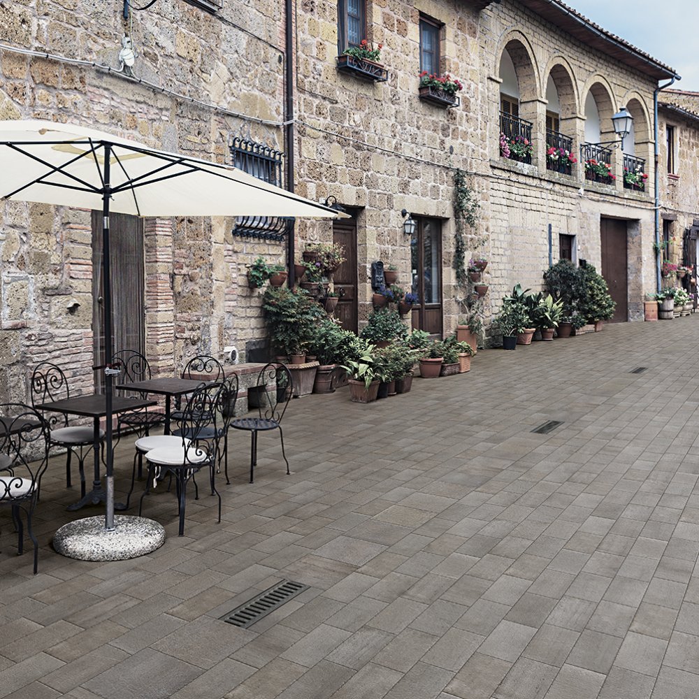 The Reggio Nell'Emilia stone effect collection by Cir Ceramiche is ideal for outdoor flooring, thanks to the high technical performance of porcelainstoneware, which guarantees resistance, durability, hygiene and ease of cleaning.