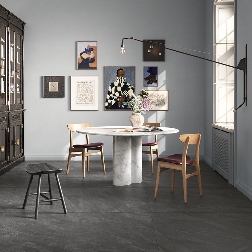 This collection stands out for its ability to recall the primitive charm of slate, whose original black colour has been delicately lightened by the sun's rays to a more versatile and soft grey.