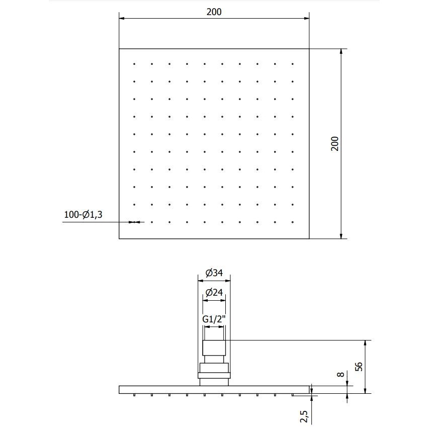IB RUBINETTERIE MONAMOUR SQUARE SHOWER HEAD 20X20CM CHROME