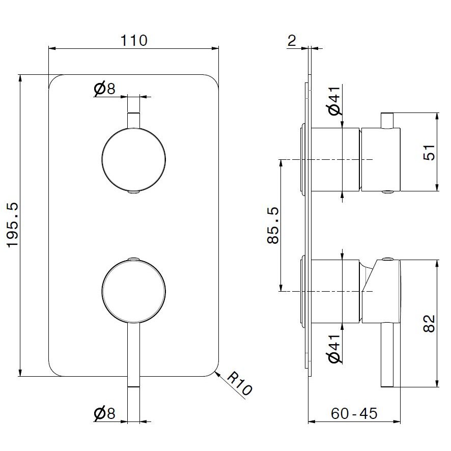 NEWFORM XT CONCEALED SHOWER MIXER WITH 2-WAY MECHANICAL DIVERTER CHROME