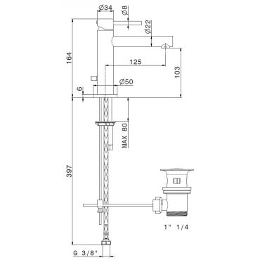 • BUGNATESE RODOS WASHBASIN MIXER EXTENSION CHROME WITHOUT POP-UP AND WITH FLEX