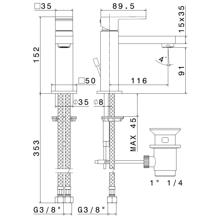 • BUGNATESE LEM BASIN MIXER WITH POP-UP CHROMED