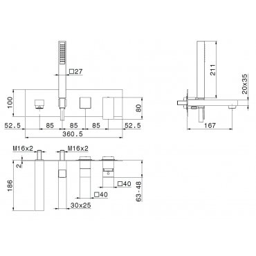 • BUGNATESE REVIVAL UNI EXTERNALBATH MIXER WITH NORMAL SHOWER