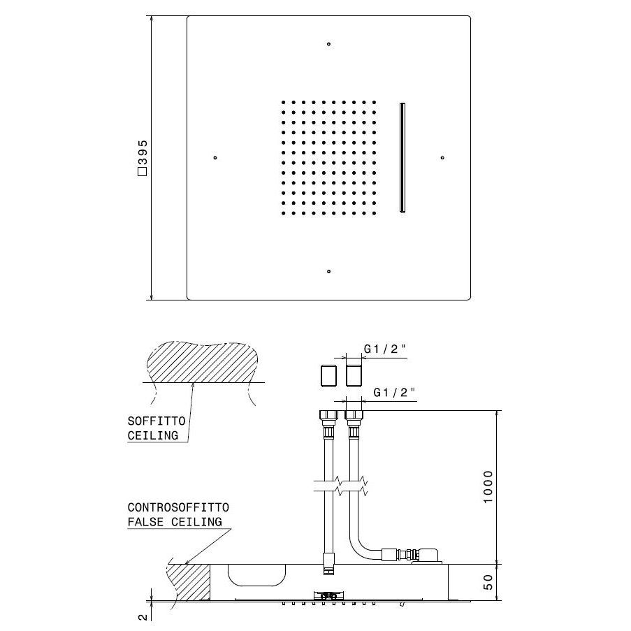 NEWFORM WELLNESS 40CM SQUARED BUILT-IN OVERHEAD WITH RAIN AND WATEFALL CHROME