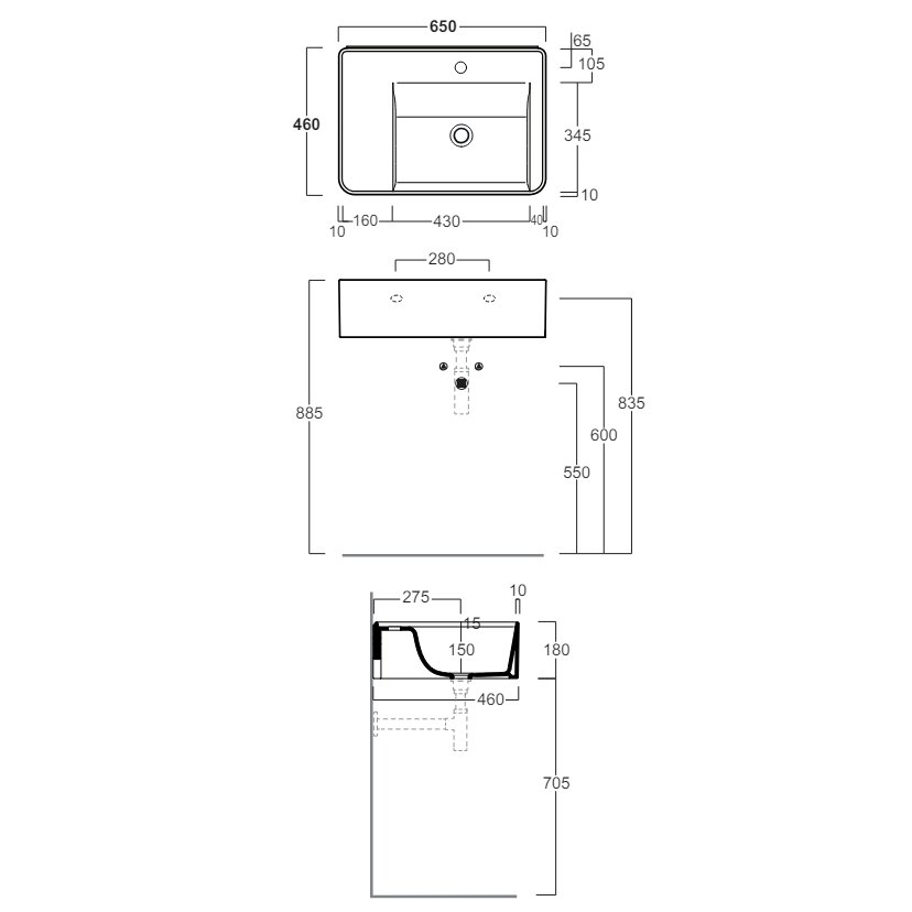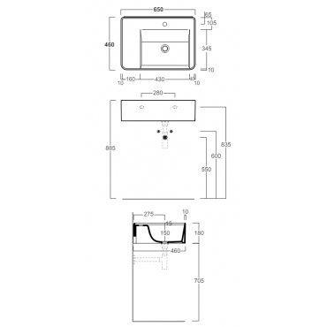 SIMAS RATIO SINGLE HOLE BASIN COUNTER TOP OR HUNG WHITE 65X46CM