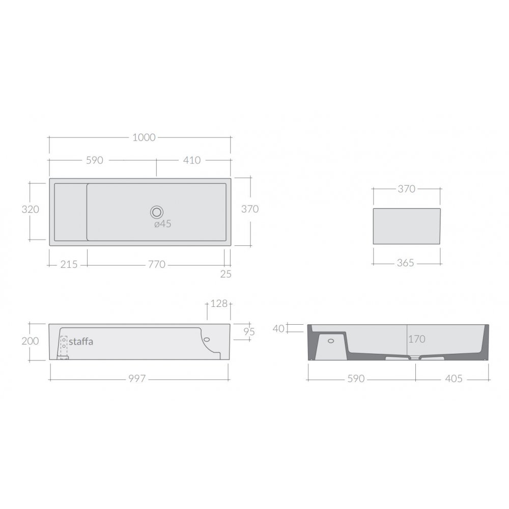 GALASSIA NEXT NARROW COUNTERTOP OR WALL-HUNG WHITE WASHBASIN 100X37