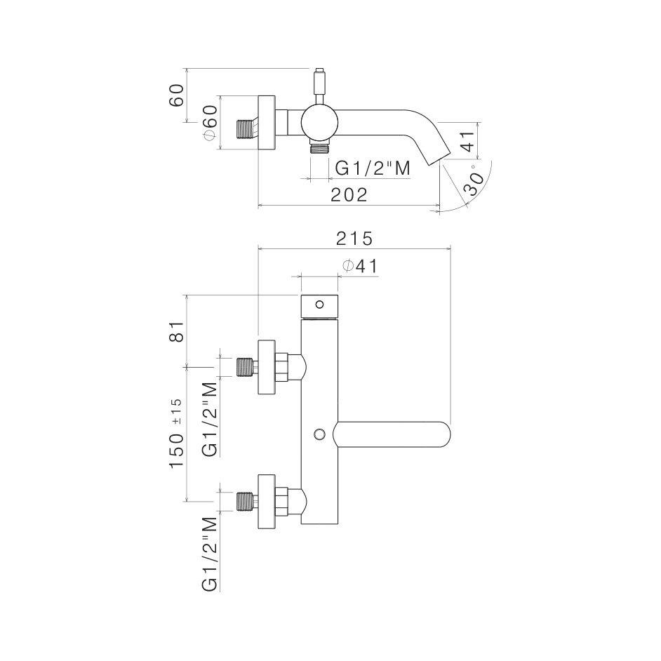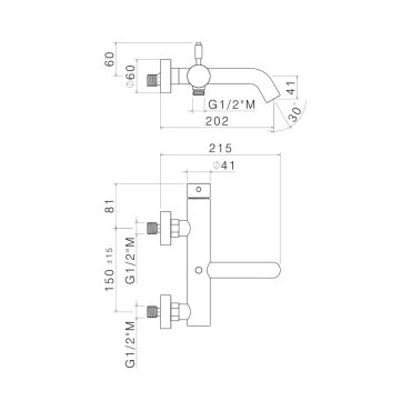 External single lever bath mixer with bath/shower diverter.