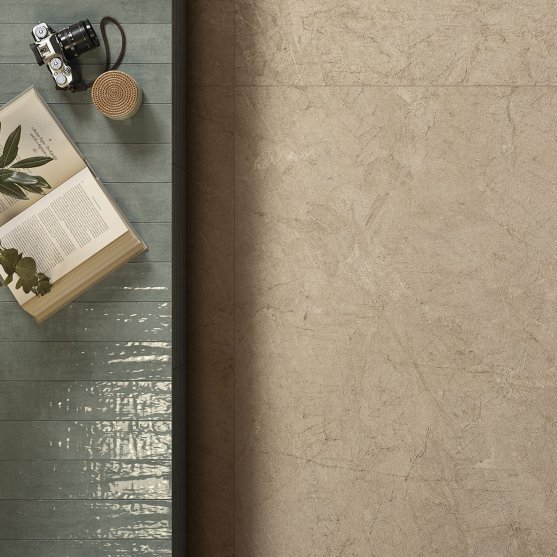 The Mindwalk collection by Ceramiche Pastorelli offers exclusive ceramic surfaces with an elegant stone effect.