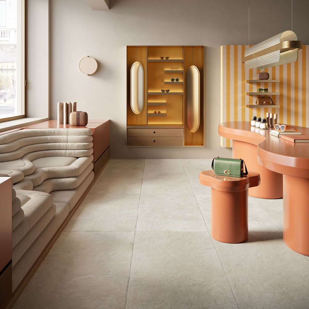 The Contrada Valente tile line by Cir ManifattureCeramiche is inspired by Apulian stone, a key element of Mediterranean architecture.
