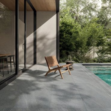 The textured surfaces are enriched with realistic graphic details and combine the authentic aesthetics of stone with the high technical performance of porcelain stoneware.