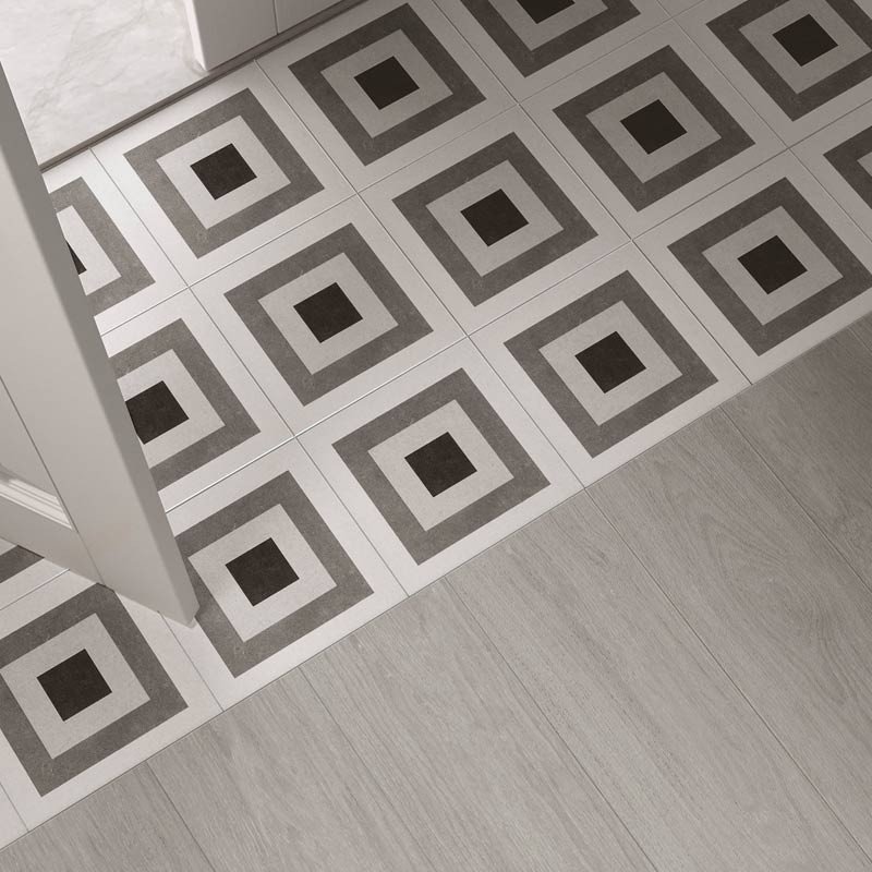 Comfort C by Dom Ceramiche has been designed to coordinate with all the collections of the Comfort project. Porcelain stoneware Cementina effect proposes decorations of the ancient tradition that can be individual