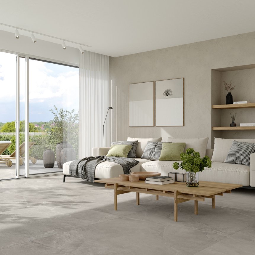 Available in a variety of finishes and formats, this collection stands out for its neutral, natural tones, authentic stone effect and resistance to wear, ensuring durability, style and versatility.