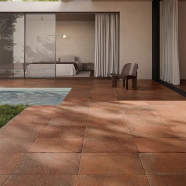 This tile series captures the vibrant texture and warmth of terracotta, reinterpreting it in the form of high-quality porcelain stoneware.