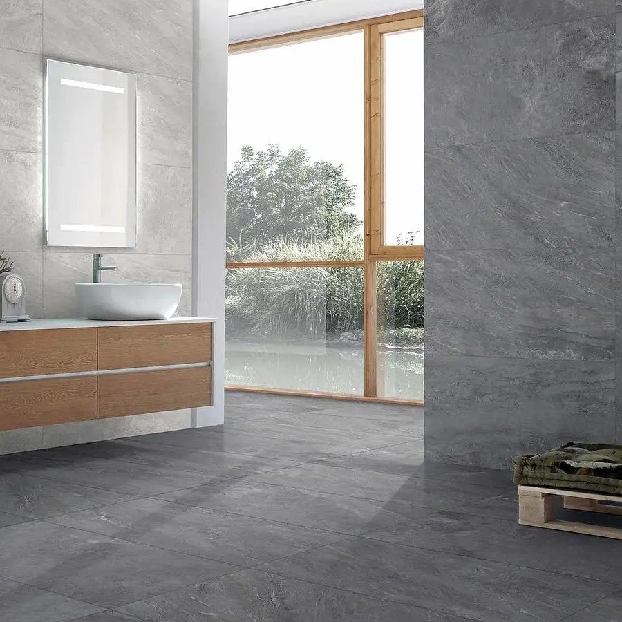 stone effect porcelain stoneware floor tile floor tiles wall tile wall tiles home house indoor bathroom kitchen dining room living room bedroom commercial area natural matt matte rectified first quality choice R10 9,5mm 0,95cm R03710 floor heating