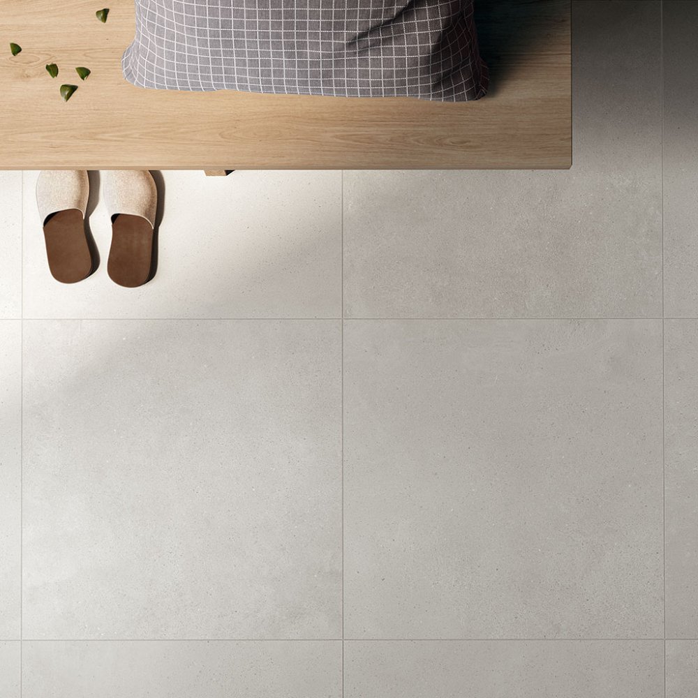 tile floor flooring paving wall tile wall covering porcelain stoneware concrete cement effect tile indoor bathroom kitchen dining room living room bedroom private residential commercial natural matt matte rectified floor heating R9 9mm 0,90cm KT603R collection 2024 2025