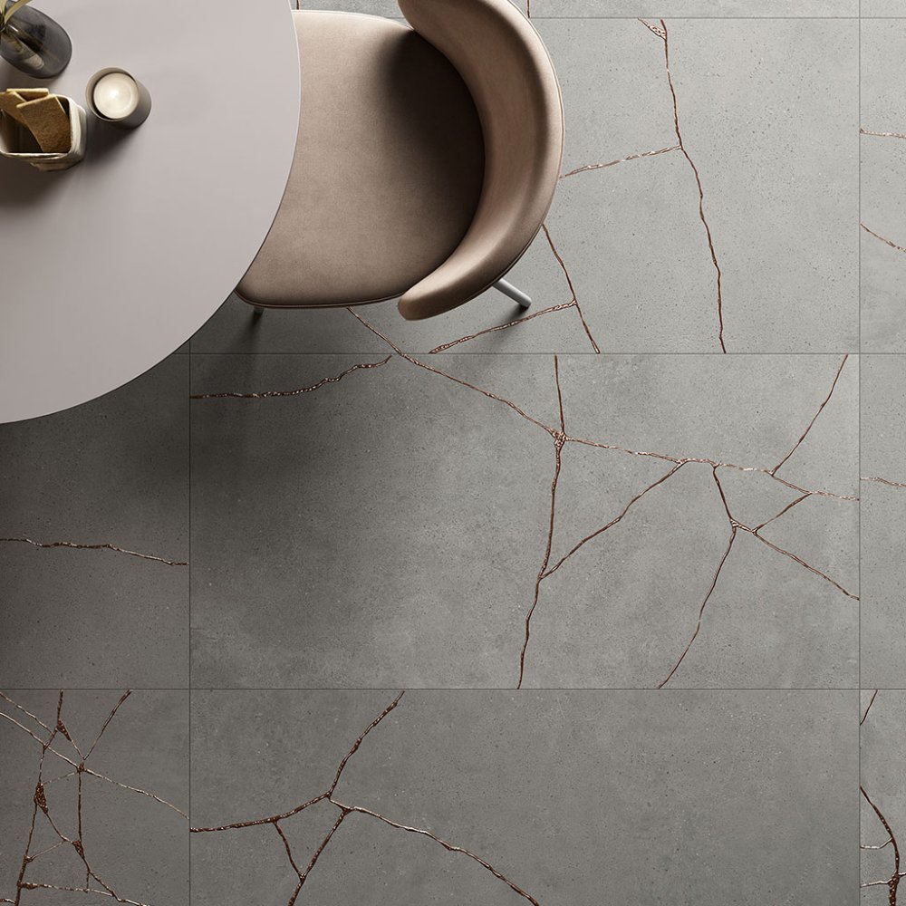 tile floor flooring paving wall tile wall covering porcelain stoneware concrete cement effect tile indoor bathroom kitchen dining room living room bedroom private residential commercial natural matt matte rectified floor heating R9 9mm 0,90cm KTH627R collection 2024 2025