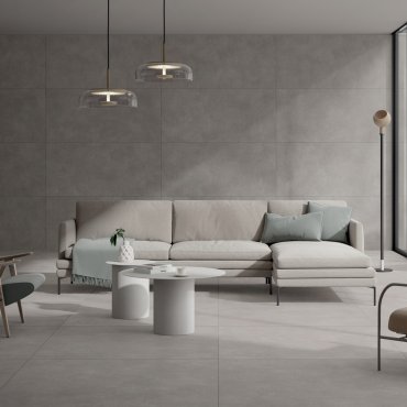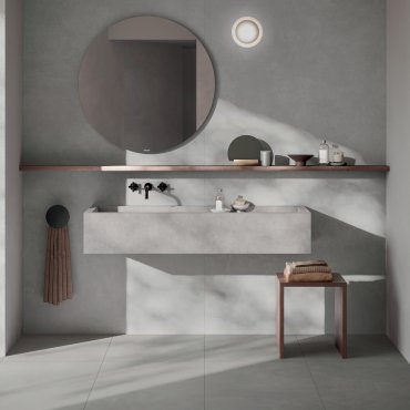 tile floor flooring paving wall tile wall covering porcelain stoneware concrete cement effect tile indoor bathroom kitchen dining room living room bedroom private residential commercial spazzolato rectified floor heating R9 9mm 0,90cm BQZ9 collection 2025 2026