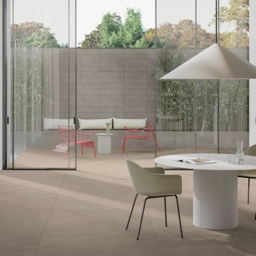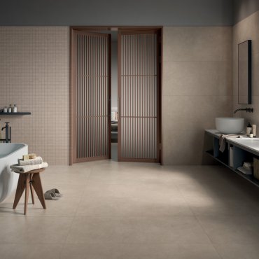 tile floor flooring paving wall tile wall covering porcelain stoneware concrete cement effect tile indoor bathroom kitchen dining room living room bedroom private residential commercial spazzolato rectified floor heating R9 9mm 0,90cm BOI4 collection 2025 2026