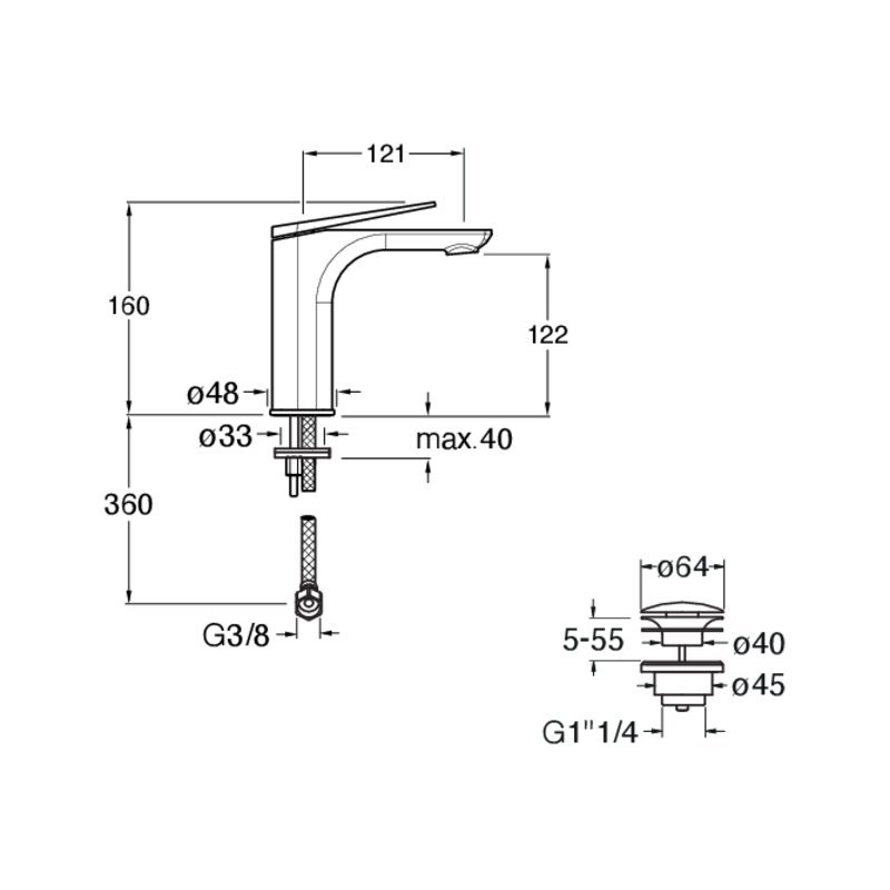 Precise Control: The top control lever is designed for smooth, millimetric adjustment of temperature and flow.