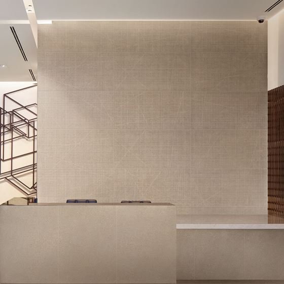 Grain Stone Ergon collection in stone effect porcelain stoneware inspired by granite .