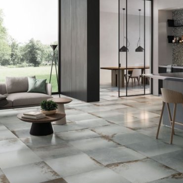 Narciso series in marble effect porcelain stoneware by Viva is inspired by the finishes of antique mirrors.