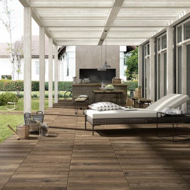 Treverkhome20, the collection of Marazzi in wood-effect porcelain stoneware with thickness. With simple and multiple installation mechanisms, the porcelain stoneware with 20mm thickness, is characterized by a structured finish with non-slip features, antifreeze, abrasion resistance, easy cleaning, easy removal thanks to the light weight of 17, 5 kg. Treverkhome 20 is composed of four different shades of color, Frassini, Larice, Quercia and Rovere. A collection that has created a slab at the top of highest quality, perfectly suitable for all outdoor environments of commercial and residential spaces, pool edges, driveway flooring and all types of outdoor projects.