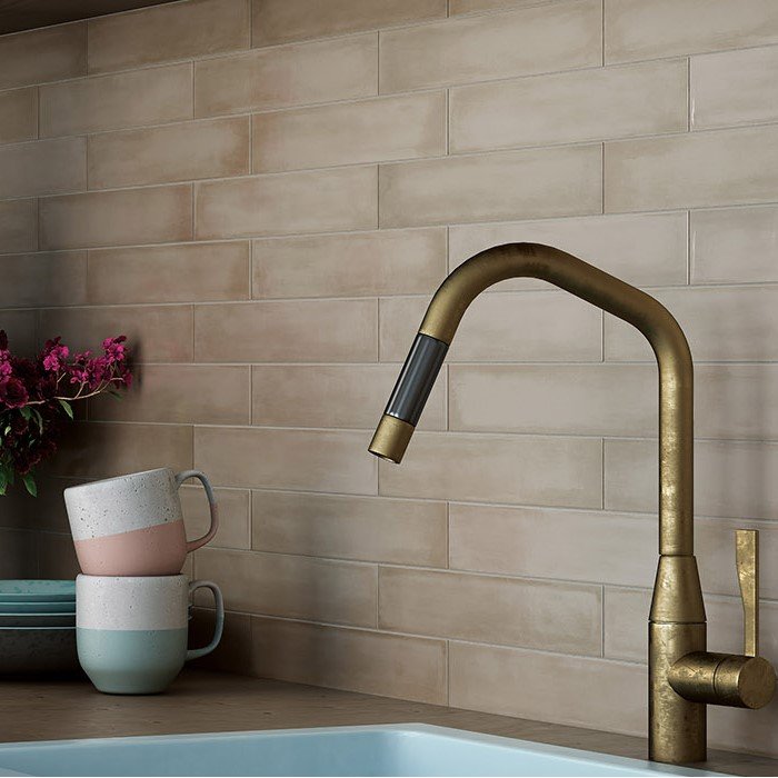 Available in white, bruno, cielo, cobalto, cream, curcuma, ecru, ice, grey, sabbia, and tortora. With the new 6.1x37 size, majolica effect porcelain stoneware tiles give to the room a contemporary and elegant look.