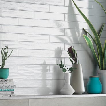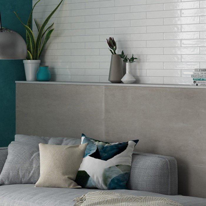Available in white, bruno, cielo, cobalto, cream, curcuma, ecru, ice, grey, sabbia, and tortora. With the new 6.1x37 size, majolica effect porcelain stoneware tiles give to the room a contemporary and elegant look.
