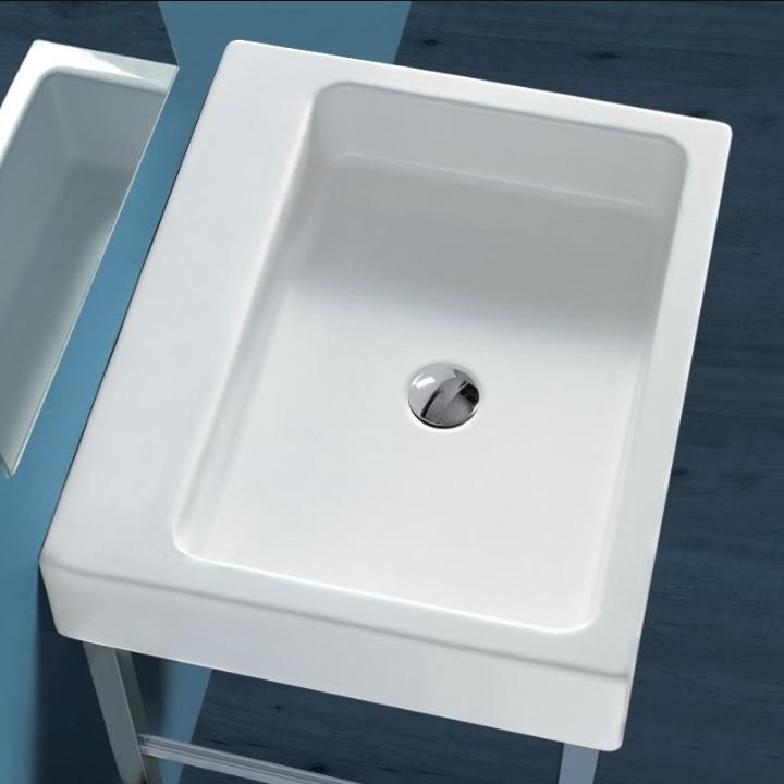 basin to be mounted on stand ceramic glossy white fixture modern bathroom U60 rectangular home finiture U 60