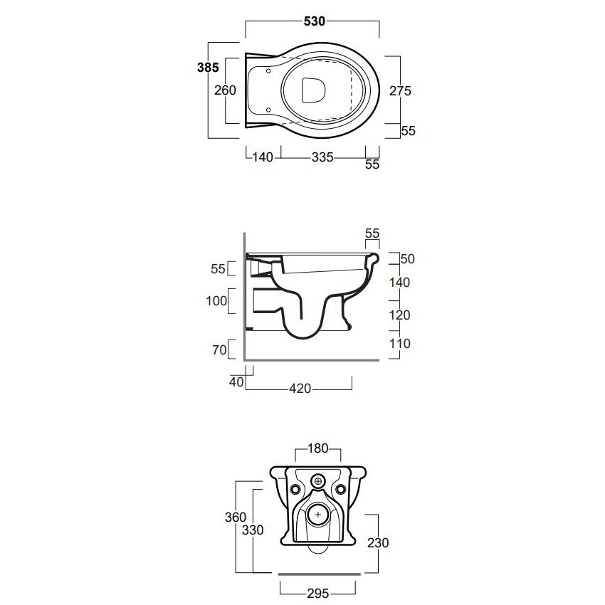 El set incluye: LA18 -Inodorosuspendidosin reborde(rimless)Ficha técnica LA19- Bidé suspendido con un orificioFicha técnica LA002-asiento de inodoro depoliéster blanco con bisagras cromadas